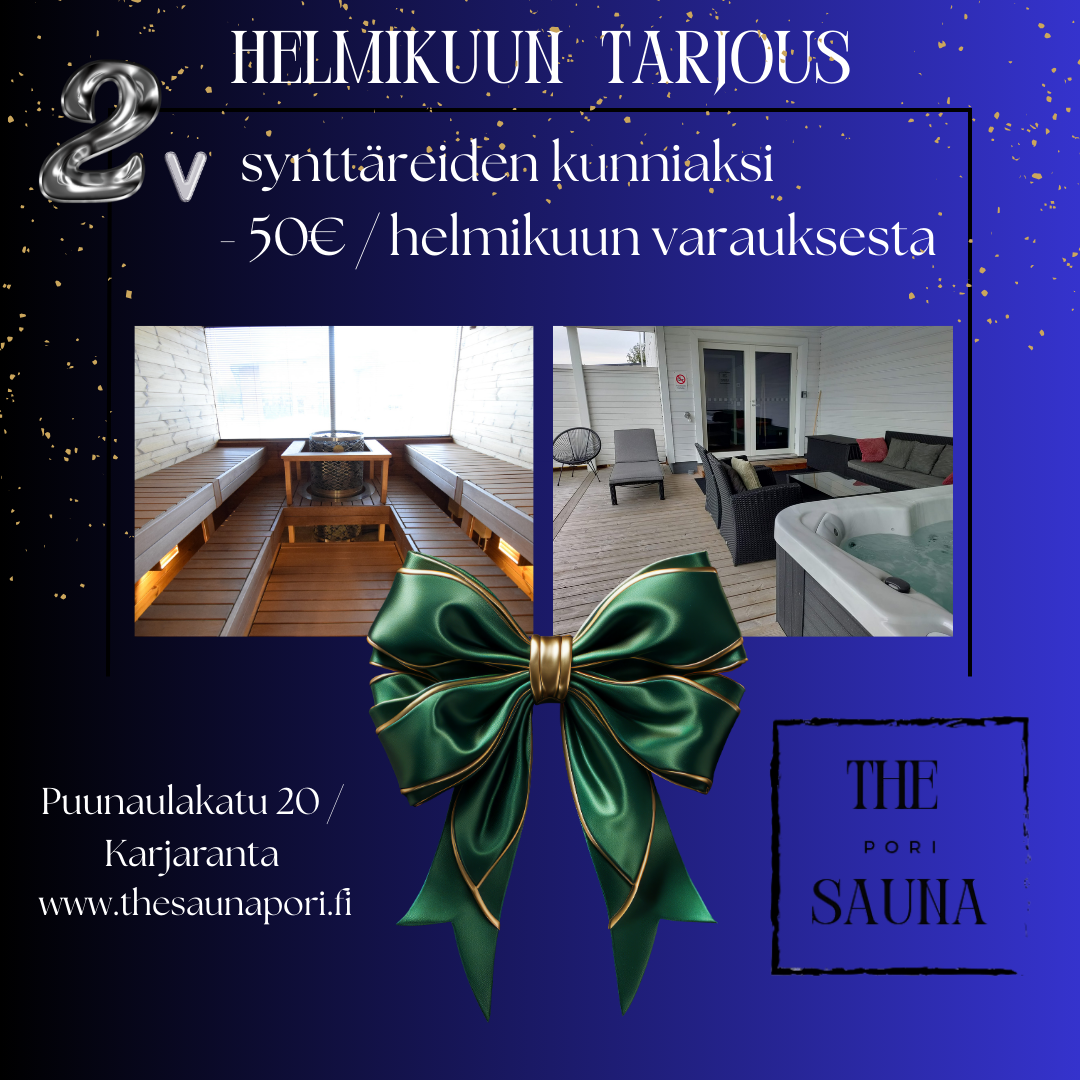 Saunatila, oleskelualue, pukuhuoneet (2kpl) , jacuzziallas, ulkoterassi